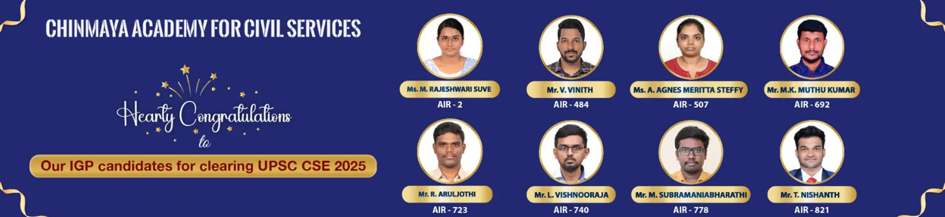 Chinmaya Academy for Civil Services is guided by an esteemed advisory council of retired IAS, IRAS, and IFS bureaucrats. They bring unmatched expertise through guest lectures, seminars, interview sessions, and personalized mentorship, shaping the next generation of civil service leaders.