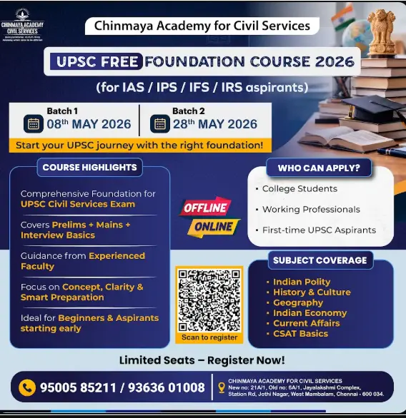 Are you ready to embark on the challenging yet rewarding journey of becoming an IAS officer? At Chinmaya Academy, we believe that with the right guidance, dedication, and support, every aspiring civil servant can achieve their dreams. Recognized among the top 10 IAS academy in Chennai, we offer both online IAS coaching and classroom programs to help students excel.